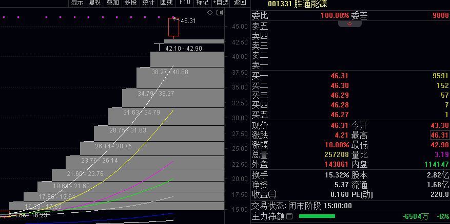 市场第一个高度板出现,连续12个涨停的001331胜通能源是市场龙头无疑,虽然股价高,但是利好消息后市场不断打出高度买单,短线分析只要它不出现高位跌停,那么后面可能游资接力搞搞短线1日游
