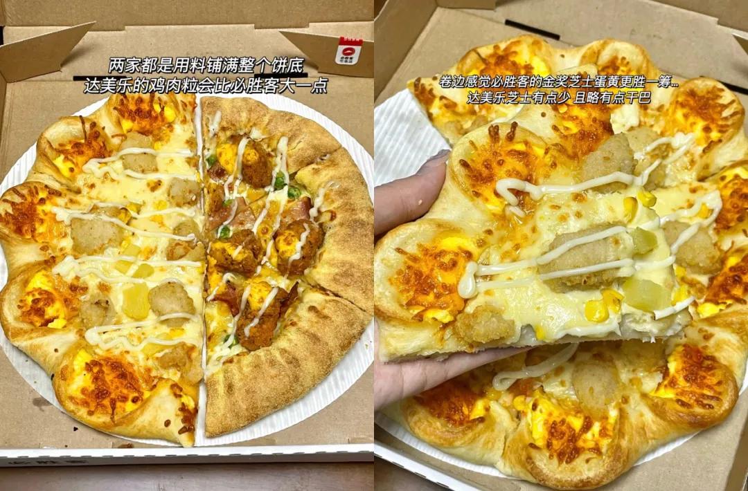 还有博主做了必胜客与达美乐相似款比萨的对比,从测评款来看,必胜客的品控似乎更优一些。