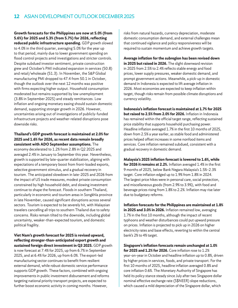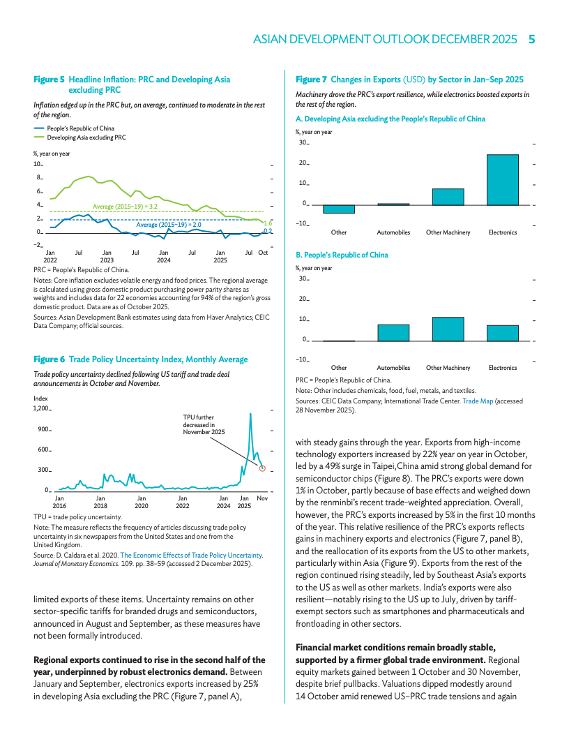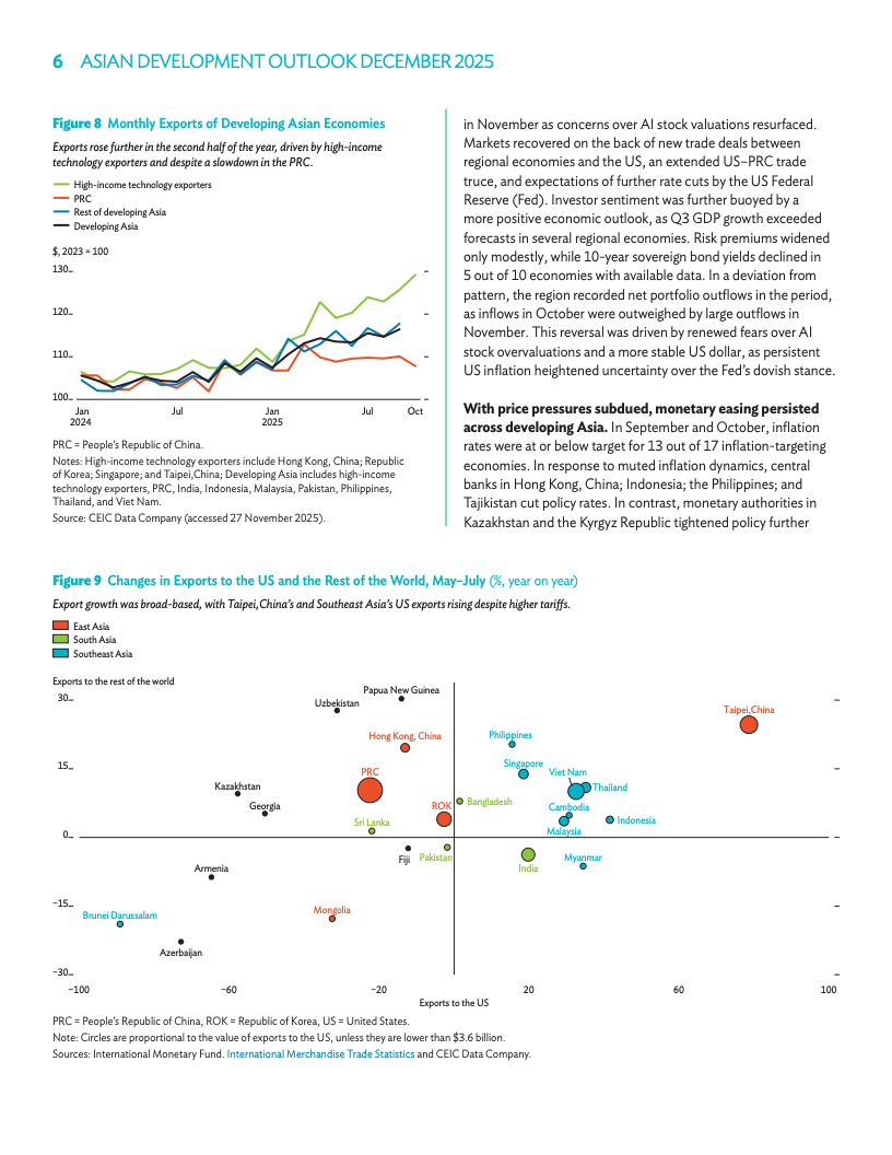 2025年增长预期微升至4.6%。通胀压力持续缓解,预计2024年区域通胀率降至1.6%,低于此前预估。通胀放缓与金融环境稳定为各国提供政策空间。虽然地缘政治存在挑战,但稳固的基本面支撑了出口表现。各政府正致力于通过开放贸易与投资维持韧性。