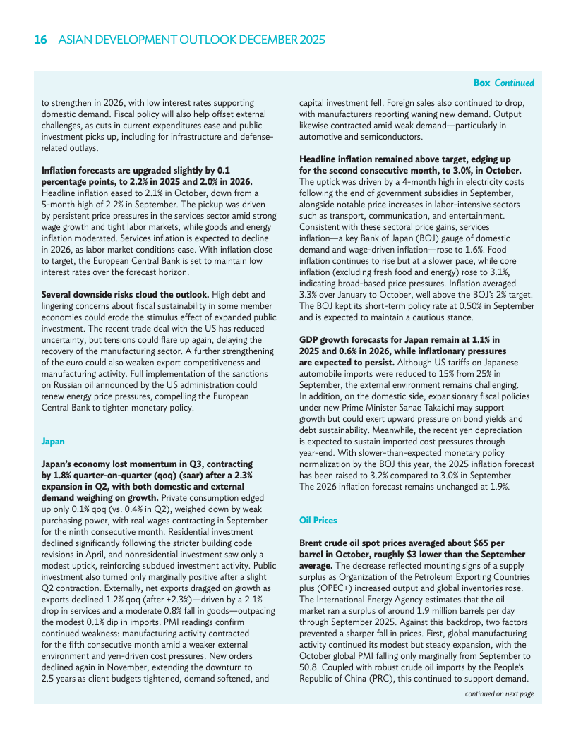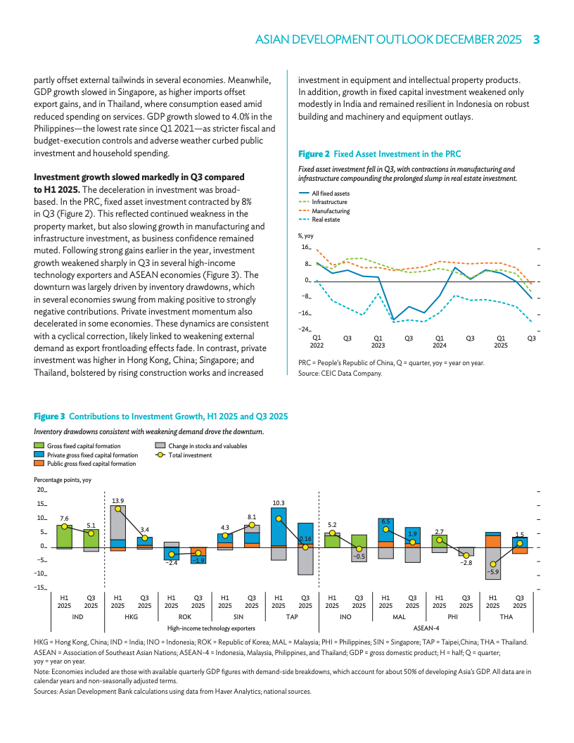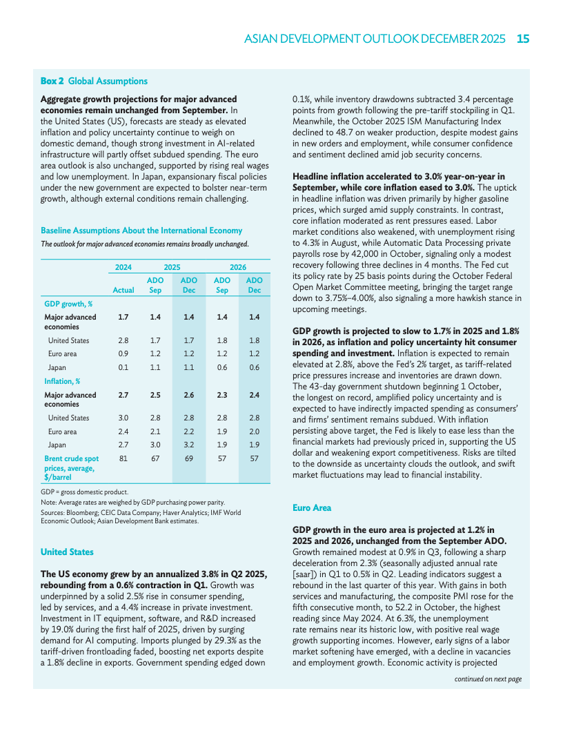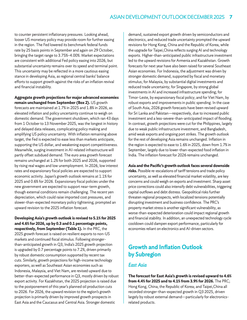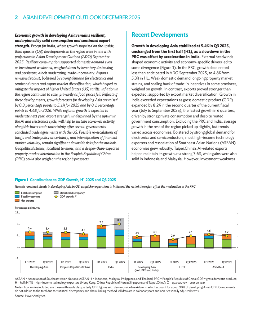 中国市场因外贸韧性与财政加码,本年度增速预期升至4.8%,2026年预估维持4.3%。印度2025年展望上调0.7个点至7.2%,受税收减免及消费提振,2026年预测为6.5%。虽然房地产调整仍是风险,但出口与政策发力有效对冲了内需波动。区域内主要引擎的稳健增长,进一步夯实了整体复苏前景。
