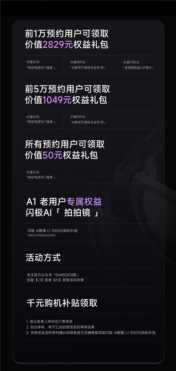 快科技12月30日消息,昨晚,闪极最新发布了loomos AI拍摄眼镜L1。预约价格为2999元,A1老用户补贴到手价为1999元。