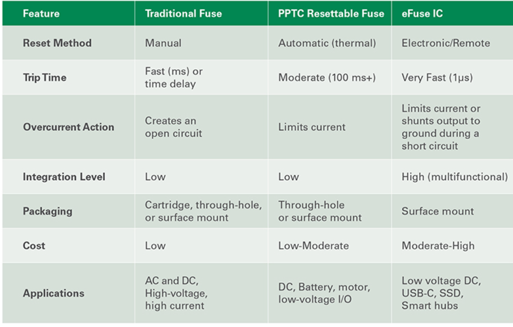 本文比较了目前最常见的保护解决方案:传统熔断器、可复位聚合物PTC(PPTC)器件以及智能eFuse集成电路。我们考察了它们的功能差异、性能权衡以及在消费电子领域的适用性。