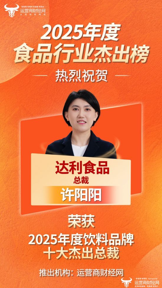 日前,运营商财经网正式推出“2025年度饮料品牌十大杰出总裁”榜单,达利食品总裁许阳阳成功上榜!