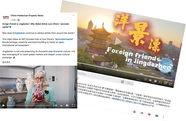 记者带着“景德镇为何持续吸引来自世界各地的艺术家?”的疑问,走进中国“瓷都”景德镇,对话两位外国艺术家,从知识产权视角切入,记录他们在景德镇创作与生活的真实日常,通过他们的个人叙事与沉浸式镜头语言,展示景德镇如何将历史传承、当代创意与品牌建设融合在一起,打造一个开放、多元、国际化的艺术生态。视频在国内外平台同步发布,触达海内外多圈层受众。