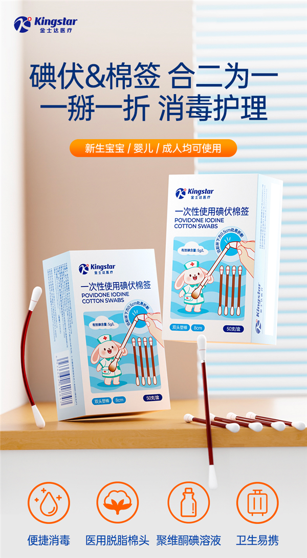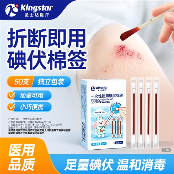 单盒50支独立包装,安全卫生,适用婴幼儿伤口消毒,蚊虫叮咬消毒。