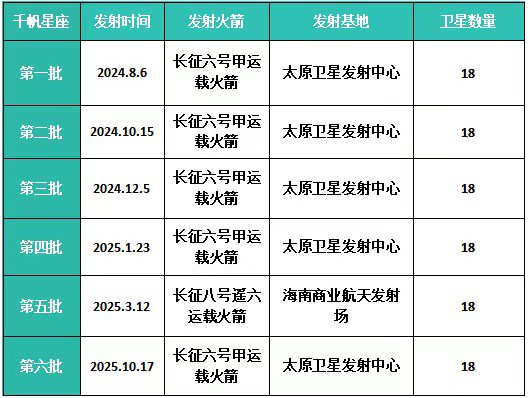 上海垣信千帆星座完成6组发射,部署108颗卫星。
