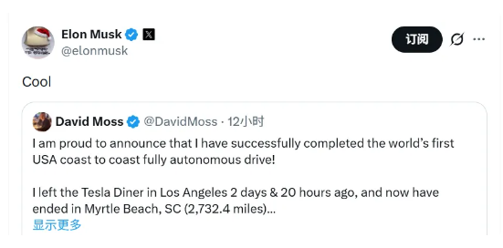 这使他成为全球首位完全依靠自动驾驶技术横穿美国的人。这一成就迅速在特斯拉社区引发轰动,并获得了特斯拉公司及其首席执行官埃隆·马斯克的公开称赞。