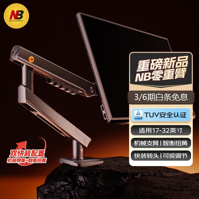 NB显示器支架机械臂促销!适配多品牌,到手仅129元