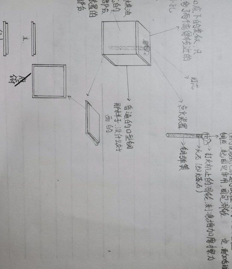 将钢弹簧、燧石、打火机外壳、铜丝与滑轮组合,可制成灯芯式打火机的点火装置。