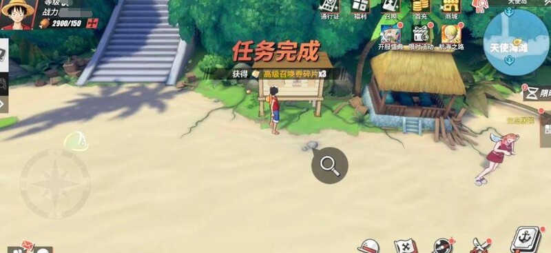 天使岛设有两处码头,我们选择从天使海滩入口进入。踏上沙滩后,前方不远处可见一个公告栏,上面张贴着悬赏令。参与并完成其中的拼图小游戏,便可赢得三张高级召唤卷碎片作为奖励。