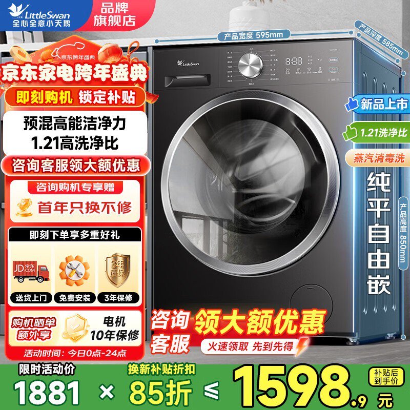 小天鹅10kg滚筒洗衣机京东钜惠低至1484元
