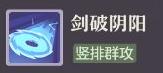 技能冷却四回合,以剑气贯穿竖排敌人,造成物理伤害,并使其法术攻击与防御降低,效果持续数回合。