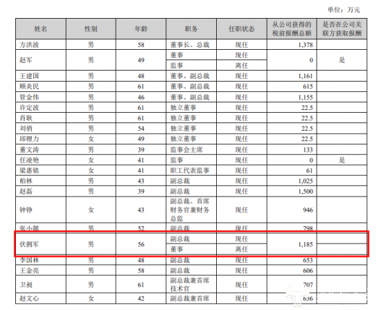 据悉,伏拥军在2024年获得的税前薪酬高达1185万元,仅次于总裁方洪波和副总裁赵磊。截至到伏拥军卸任公告披露日,其还持有公司股份20万股。由此可见,伏拥军在美的集团的待遇非常好。