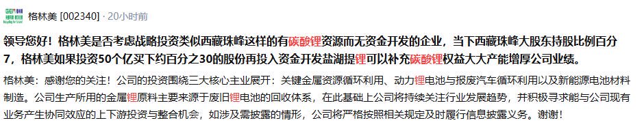 随着碳酸锂价格攀升以及股价的持续走高,上市公司近一段时间也在互动平台密集回应投资者咨询。