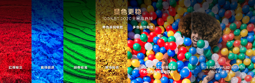 传统RGB-Mini LED显示多色画面时需三色灯珠组合发光,导致色域值下降,同时RGB-Mini LED相邻分区不同色光易逸散串扰,而TCL Q10M Pro背光均为纯净白光,画面边缘锐利清晰,色彩纯净度大幅提升。与RGB-Mini LED的局部高色域不同,TCL Q10M Pro的全局高色域不挑画面,更没有串色问题。显示单色画面时,红得极正、蓝得极透、绿得极准、黄得极亮,每一种色彩都精准还原;显示多色复杂画面时,由于发光方式始终一致,色域值不会出现波动,色彩依旧纯净准确。