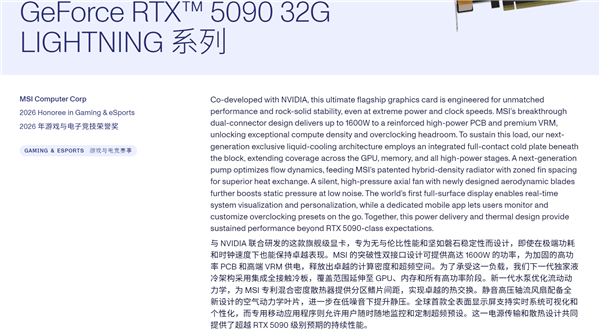 快科技1月5日消息,在CES 2026展会前夕,微星的旗舰RTX 5090 Lightning Z显卡终于揭开了神秘面纱。