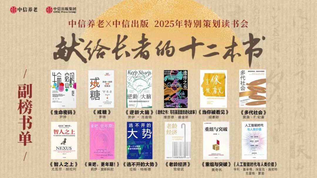 国家“十四五”老龄事业规划明确提出“构建老年友好型社会”,“老有所乐”不仅是生活品质的追求,更成为破解“精神空巢”、激活银发经济的核心命题。2025年,中信养老与中信出版跨界联动,以“献给长者的12本书”为核心IP,将知识势能与养老服务深度融合,实现“养老+文化”的闭环创新,为银发时代提供了“从被动养老到主动享老”的实践突破。