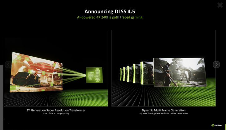 在CES 2026上,尽管英伟达并没有像往年一样带来这一代的SUPER系列显卡,但是他们正式宣布推出了新一代的DLSS 4.5技术,作为DLSS 4的重大升级,旨在进一步提升PC游戏性能与画面质量,让高分辨率、高刷新率的路径追踪游戏体验触达更广泛玩家群体。该技术依托GeForce RTX 50系列“Blackwell”显卡,目标是将性能密集型的路径追踪效果普及化,使顶级RTX 50系列GPU能以4K超高清分辨率、240Hz刷新率流畅运行路径追踪游戏。