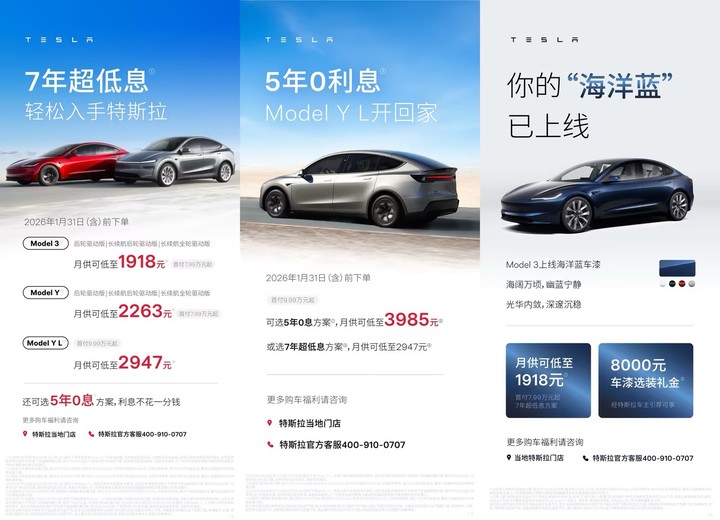 把月供降到 2000 元以下,正是其中之一。1 月 31 日前的限时窗口,是特斯拉在农历新年前锁定存量订单的明确信号。
