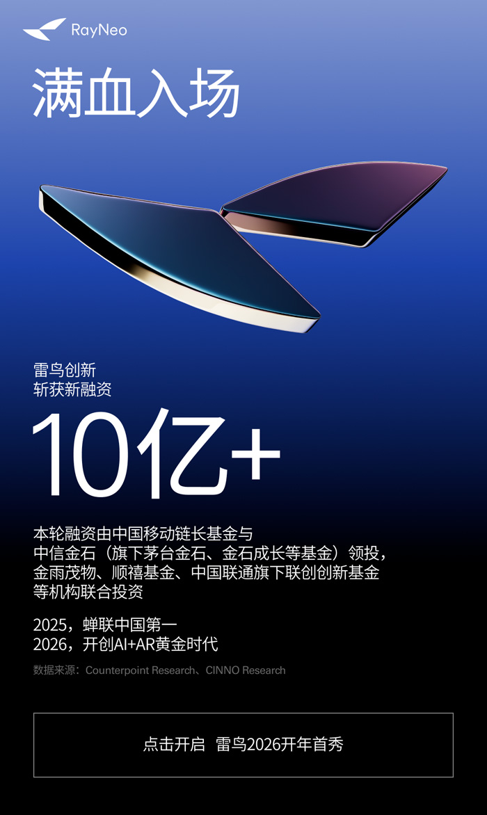 10亿融资,满血入场!雷鸟CES 2026开启眼镜eSIM时代