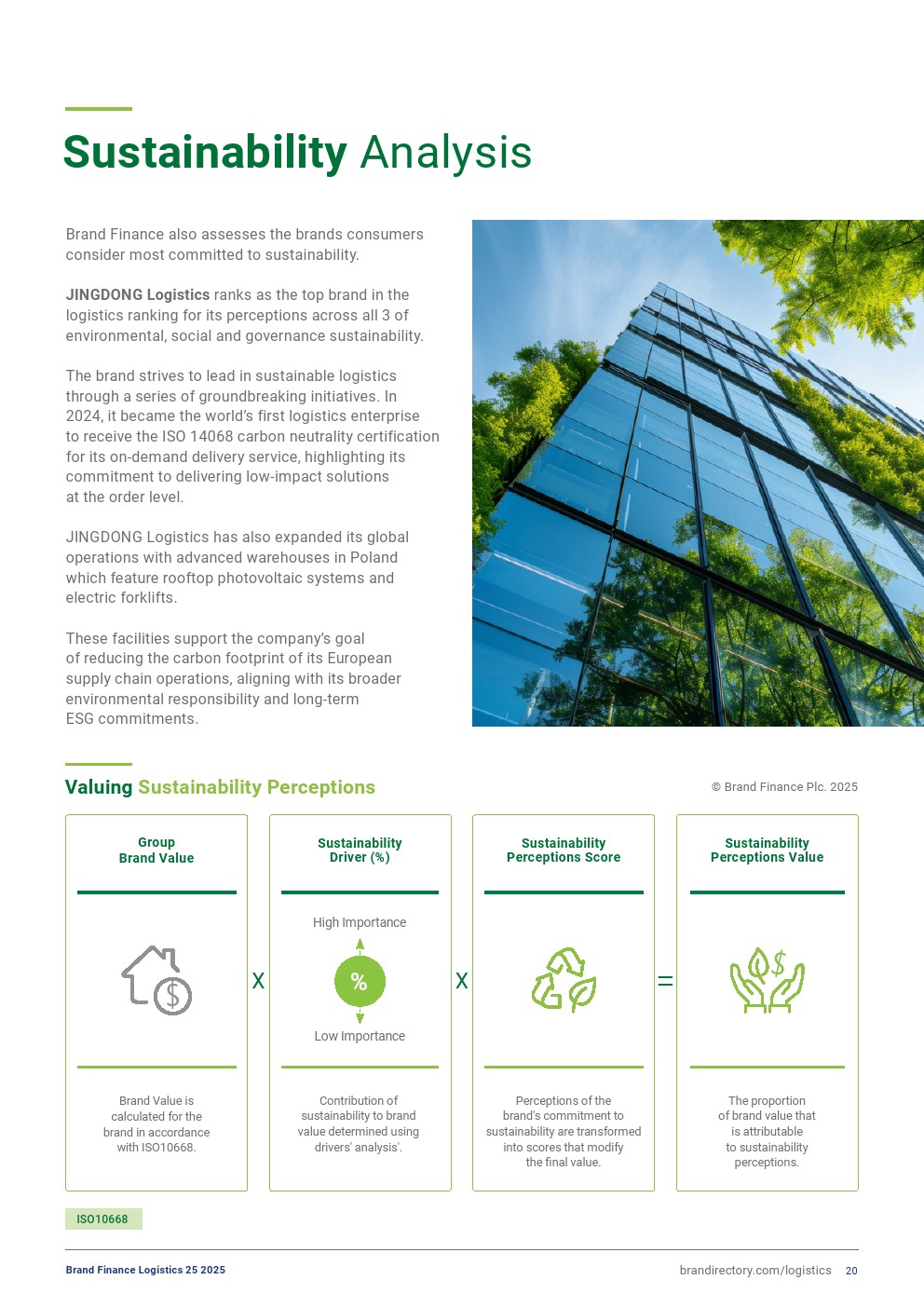 中国物流品牌在“强度”与“质量”维度上表现突出。顺丰品牌价值同比增长8%至64亿美元,京东物流以90.5分的品牌强度指数位居全球第一,并在ESG可持续发展感知中排名行业首位。京东物流2024年前三季度收入保持中高个位数增长,其在绿色物流、智能仓储及海外网络扩张方面的持续投入,显著提升了品牌溢价能力。