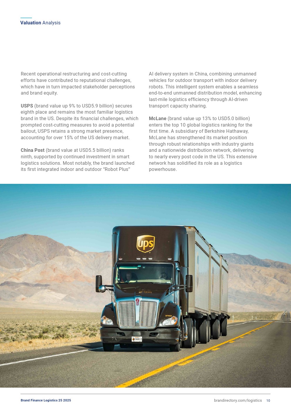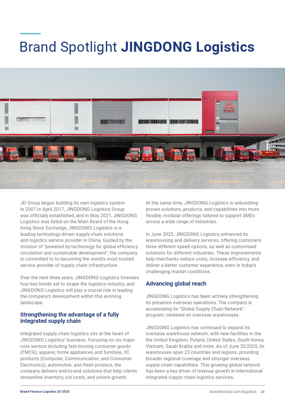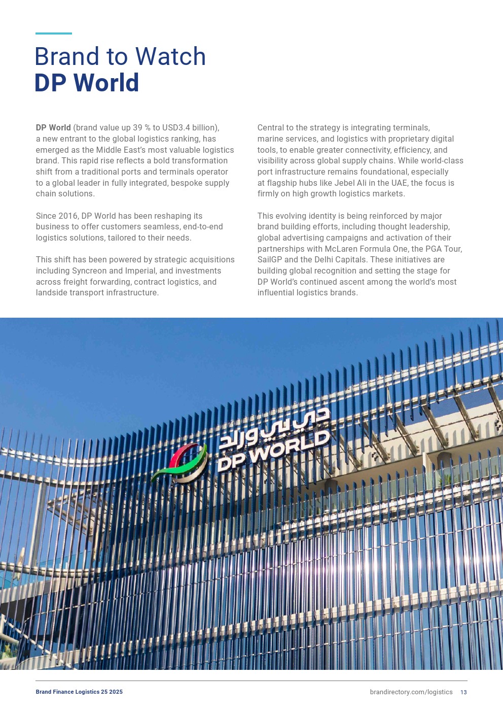 中东物流品牌的崛起亦值得关注。DP World品牌价值同比增长39%至34亿美元,首次进入全球物流品牌前列。其从港口运营商向端到端供应链解决方案提供商的转型,叠加并购与数字化平台整合,使其在高增长新兴市场中建立了清晰的差异化定位。