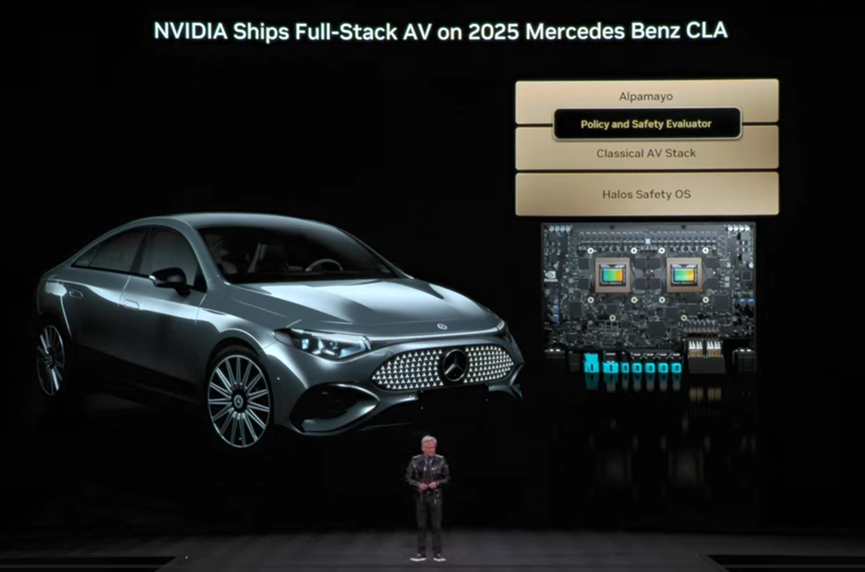 AIpamayo 的训练不依赖单一数据来源,而是建立在高度多样化的数据体系之上:大规模真实道路行驶数据、人类驾驶示范数据、由 NVIDIA Cosmos 仿真系统生成的合成数据,以及数十万级经过精细标注的高质量样本。其目的非常明确:覆盖真实世界中“长尾但关键”的驾驶场景。而真正让 AIpamayo 能够量产的关键,在于 NVIDIA 打造的双 AV Stack 架构。黄仁勋坦率指出,无论模型多么先进,都无法通过有限测试证明“永远安全”。自动驾驶系统一旦发生事故,代价远高于任何数字世界应用。因此,工程上的保守不是落后,而是责任。