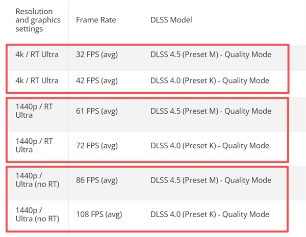 总体测试来看,在RTX 50系列显卡上,启用DLSS 4.5会带来2-3%的性能损失,但图像质量的提升却非常显著。