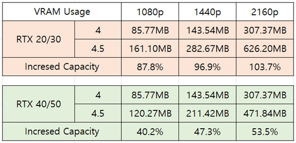 另外,最新的DLSS 4.5在 RTX 40/50 系列GPU上需要增加40-53%的显存,而对于RTX 20和30系列,这一比例高达87-103%。因此,那些8GB GPU的用户将会面临更严重的性能瓶颈。
