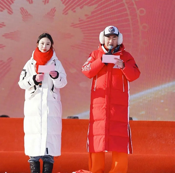 晶莹剔透的冰雕城堡前,新人代表们手捧冰雪吉祥物,身着精致礼服,在悠扬的婚礼进行曲中牵手踏上红毯,一步步走向象征幸福的典礼台。本次婚典由黑龙江文旅推荐官冰城左右哥担纲主持,他的主持风格活泼又不失庄重,将这场婚礼盛典流程串联得温馨动人,为新人们的幸福时刻增添了别样的光彩。