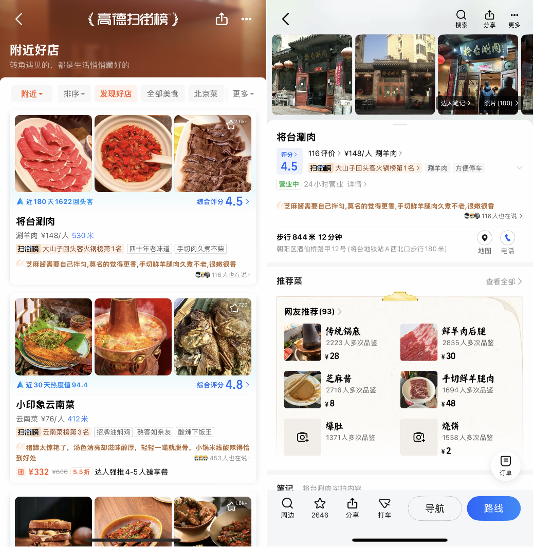 不同于市面上常见的美食玩乐榜单,高德扫街榜纳入了用户的行动指标,将真实的导航到店行为与评价反馈结合起来,避免了常规榜单容易被刷分、注水的问题。