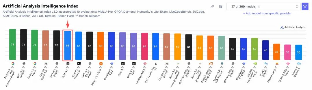 GLM-4.7登顶Artificial Analysis全球开源榜首。