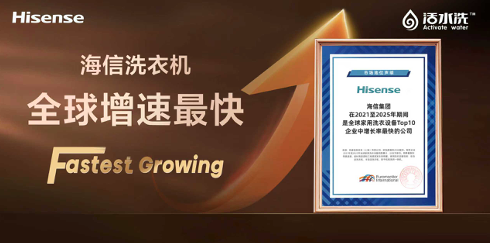 在全球洗衣机市场竞争日趋激烈的背景下,海信洗衣机逆势而上,跑出了令行业瞩目的“加速度”。在海外,海信洗衣机已销往全球140多个国家和地区。2025年6月,其在英国的市场份额突破11%,跃居行业第一;在克罗地亚、塞尔维亚等国份额超过30%,稳居当地市场前三。在南非,海信洗衣机实现从行业追赶者到量额双第一的跨越式增长。在全球范围内,海信洗衣机获欧睿国际认证为近五年全球TOP10中增速最快(2021-2025)。