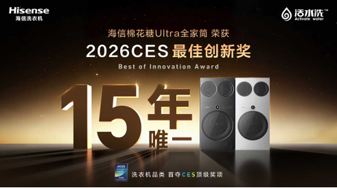 当地时间1月6日,全球消费电子行业年度盛会——国际消费电子展(CES 2026)在美国拉斯维加斯举行。在这场汇集了全球顶尖科技产品的舞台上,海信洗衣机爆款产品——海信棉花糖Ultra全家筒凭借出众的分区洗护与热泵洗烘一体技术,一举摘得CES最高荣誉“最佳创新奖”(Best of Innovation Award),成为近15年来唯一获此奖项的洗衣机品类产品(家用电器领域)。这一成就不仅标志着海信在高端洗衣技术领域的全面领先,也为其全球化品牌战略注入了强劲动能。