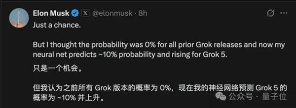 毕竟,官方已经自曝Grok 5正在训练中了……