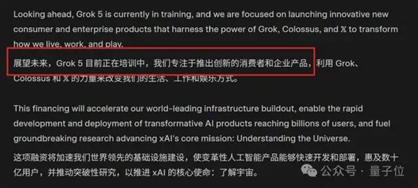 于是随着最新一轮融资落定,有关“Grok 5将在今年一季度推出”的传闻又开始甚嚣尘上。