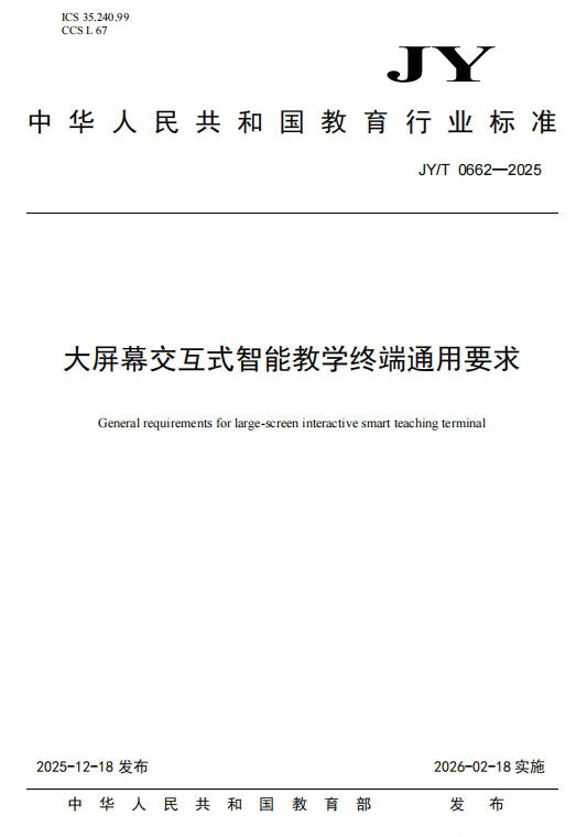 在行业快速发展的同时,也逐渐暴露出标准模糊、技术指标差异较大、教学适配程度低等问题。如何在保障教学效果的同时,更好地兼顾师生健康、交互体验与课堂安全,成为行业共同关注的重点。在此背景下,《大屏幕交互式智能教学终端通用要求》应运而生,旨在通过建立统一、科学、可执行的行业标准,推动教育装备向规范化、高质量方向发展。