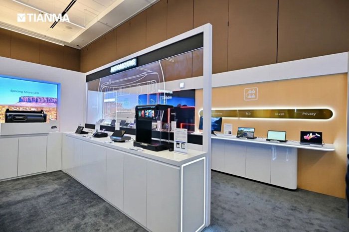 天马天工屏展示区,天马最新发布的两款新品 ——超能窄边「天工」屏与臻彩健康「天工」屏也集中亮相,以领先的显示技术与人性化设计,面向全球观众展现了天马在高端屏幕领域的硬核实力。