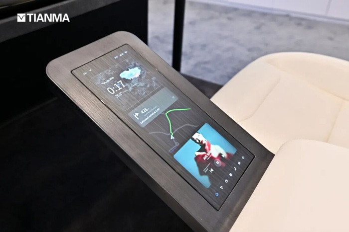 天马于本次CES全球首发了新一代智能座舱(Smart Cockpit)解决方案,覆盖贯穿式风挡一体屏、中控大屏、扶手屏及后枕屏等车内多区域显示。该座舱集成了天马ACRUS像素级调光、全景影像系统、以及隐藏式智能显示等技术,以“简约质感+智能高效”为理念,打造面向未来的出行场景解决方案,致力于提供“一屏联舱、智享驾乘”的全场景人机交互升级体验。