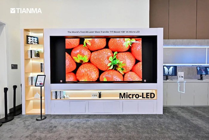 天马全球首款全激光巨转108英寸无缝拼接Micro-LED无界巨幕屏无疑是展会焦点之一。依托全激光巨量转移工艺与先进无缝拼接技术,打造108英寸4K 超高清显示标杆。其峰值亮度高达1500nits,反射率控制在2%以内,拼接缝宽缩减至20μm以下,配合1,000,000:1的顶级对比度,10lux环境光下达到ACR对比度>30,000:1,实现近乎零边框的视觉延伸效果,为家庭影院、商业显示等场景解锁“无限扩展、极致清晰”的全新视界体验。