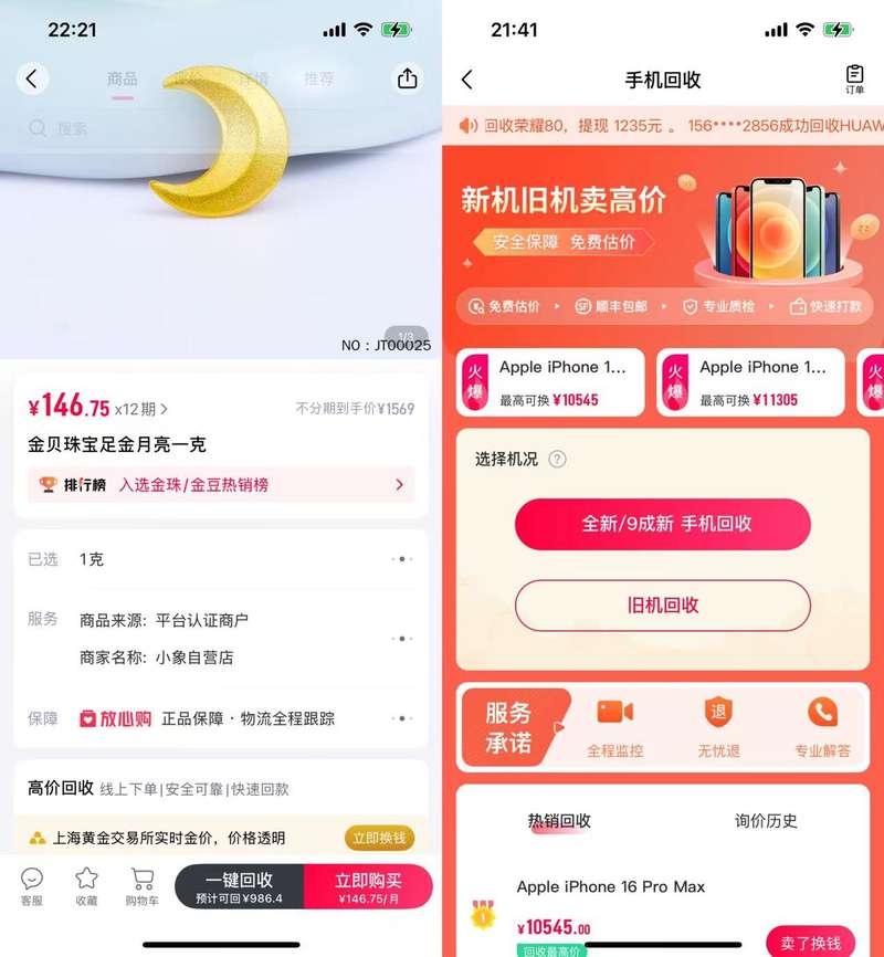 小象优品的做法则更加直接:该平台针对黄金商品,在销售时就提供“一键回收”。