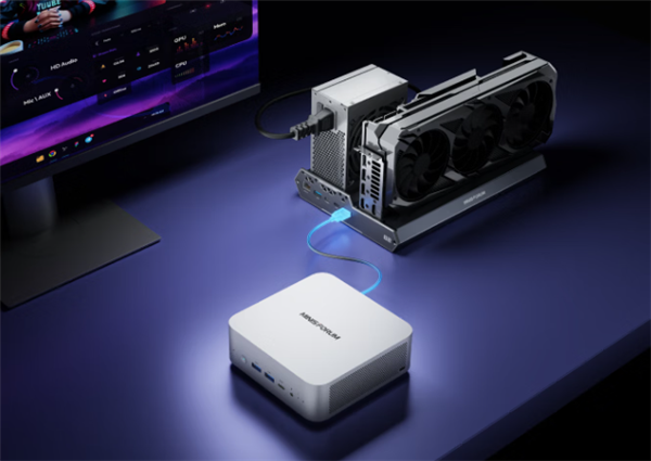 DEG2尺寸为270 x 175 × 41mm,支持用户自行安装ATX或SFX电源。通过附带的OCulink或雷电5接口,它可为部分笔记本电脑或迷你PC提供更强的图形性能,并支持随主机同步开关机。