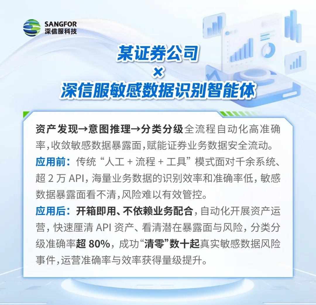 如今,深信服敏感数据识别智能体已服务上百家用户,覆盖金融、政府、能源、交通、制造等多行业,积累了丰富的场景实践经验与可复用的行业模板。