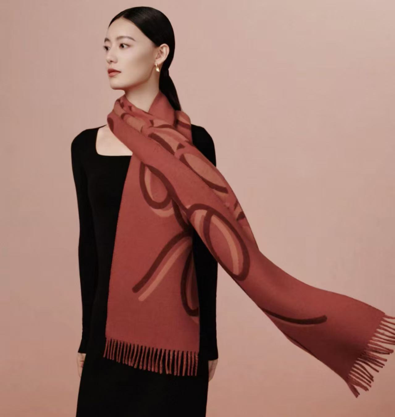 此外,前文提及的与央视春晚所合作的丝巾产品也已上架,100%优质桑蚕丝搭配14姆米斜纹绸,加上青年艺术家TINA YU的设计构成了天马行空的美学意象。双面印花与精致卷边更加凸显出真丝丝巾该有的贵气与品质。