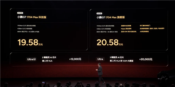 同时用户可以付费升级为Ultra SE(12000元)和Ultra版(20000元),升级点分别为2颗图灵AI芯片+第二代VLA大模型,以及3颗图灵AI芯片+第二大VLA+VLM大模型。