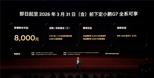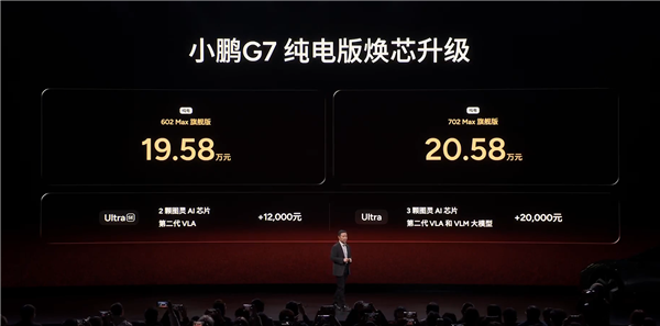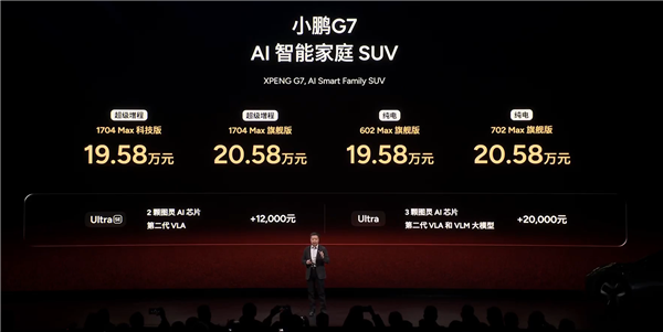 快科技1月8日消息,刚刚,2026款小鹏G7家族上市,此次包含增程和纯电两种动力,价格保持一致,Max版的价格为19.58-20.58万元。