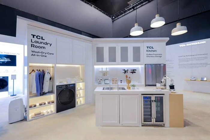 而在冰洗领域,TCL新一代AI健康鲜储冰箱GeniusFresh系列冰箱搭载WIFI智慧科技,其配备T-Fresh与Pure Air全空间除菌净味系统,能高效分解异味,持久守护食材原鲜;结合金属背板、大变温空间、灵活悬梁臂搁架、自动制冰机等配置,让用户畅享品质生活。此外,本届CES展出专为北美家庭打造的28'大容量AI超级筒洗烘一体机,以5.5立方英尺超大容量,一机容纳全家衣物,省时省水更省心。同时其搭载AI超级筒技术,以多重传感器智能匹配水温、水流与转速,配合洗烘一体全程接力,带来高效轻松的洗护升级。