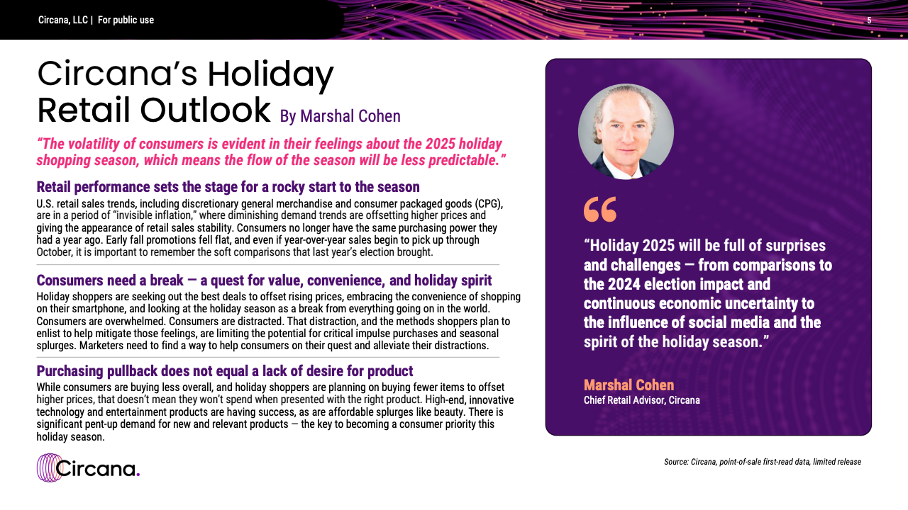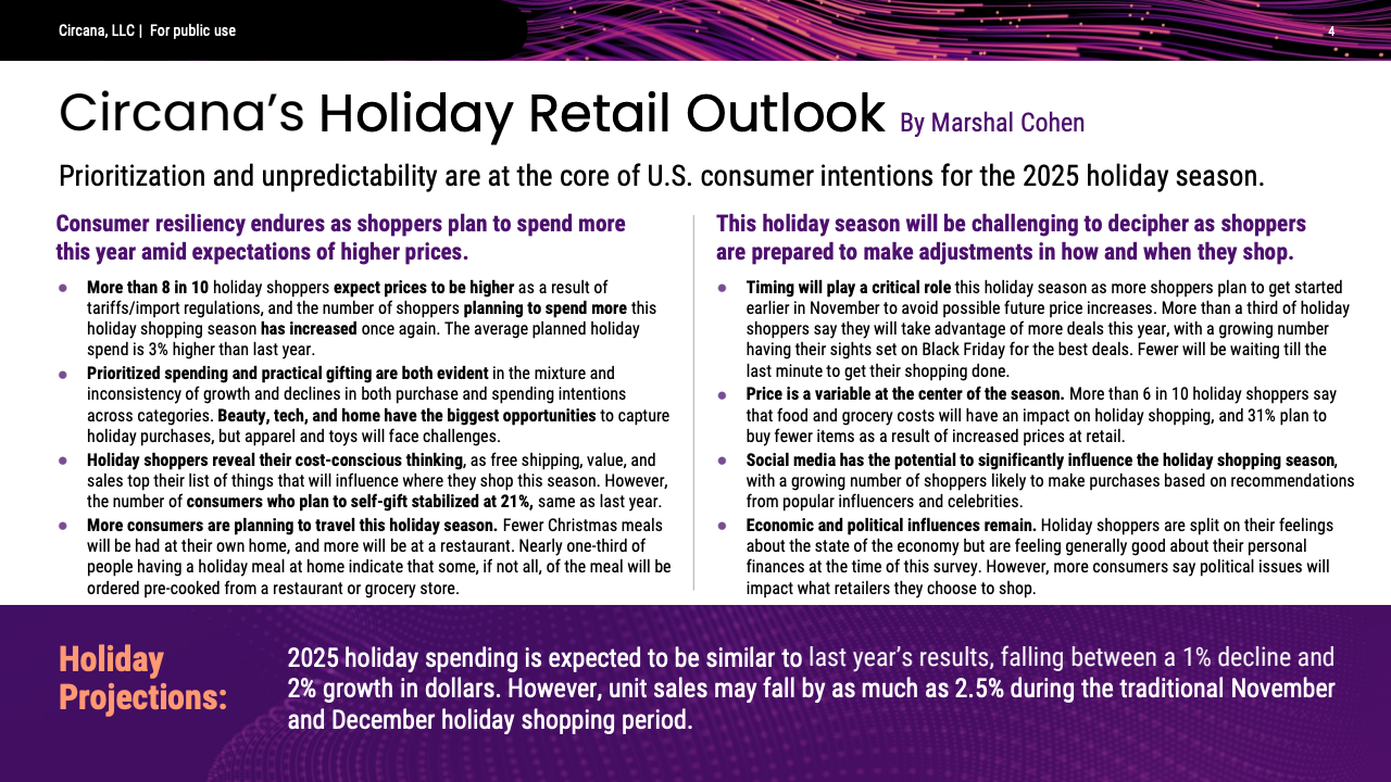 从趋势洞察看,2025年假日零售的本质并非需求复苏,而是消费者在不确定环境下的理性再分配。高价、创新型产品与低价、情绪价值型商品并存,销量承压但客单价托底。未来一段时间,零售增长将更多取决于谁能在正确时间、以合适价格、通过高效渠道触达目标人群,而非依赖整体消费情绪的普遍回暖 。