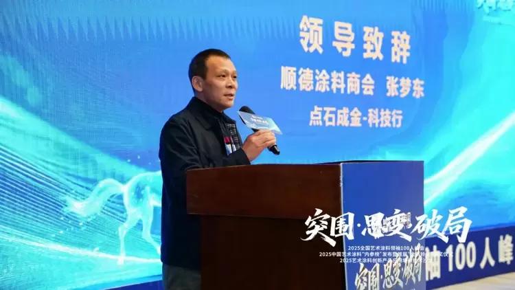顺德涂料商会秘书长张梦东则在“点石成金-科技行”主题致辞中,从“标准引领·技术赋能”角度提出破局思路。他表示,行业应通过新标准锚定方向、新技术激活动能、IP聚合力量实现换维升级,并宣布2026年将举办第四届艺术涂料节、漆彩中国品牌价值峰会等活动,推动行业标准化与协同发展。