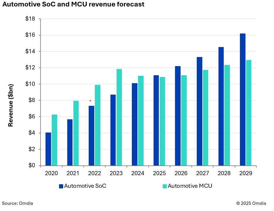 汽车产业也将继续向域架构转型,这将为更广泛的供应商(MCU与SoC厂商)创造机会。然而,这一转变也将带来挑战,因为集成多处理器的平台将增加软件复杂性,需要采用高级虚拟化技术、域划分方案并精细管理时延和数据吞吐量,以确保系统性能的无缝运行。